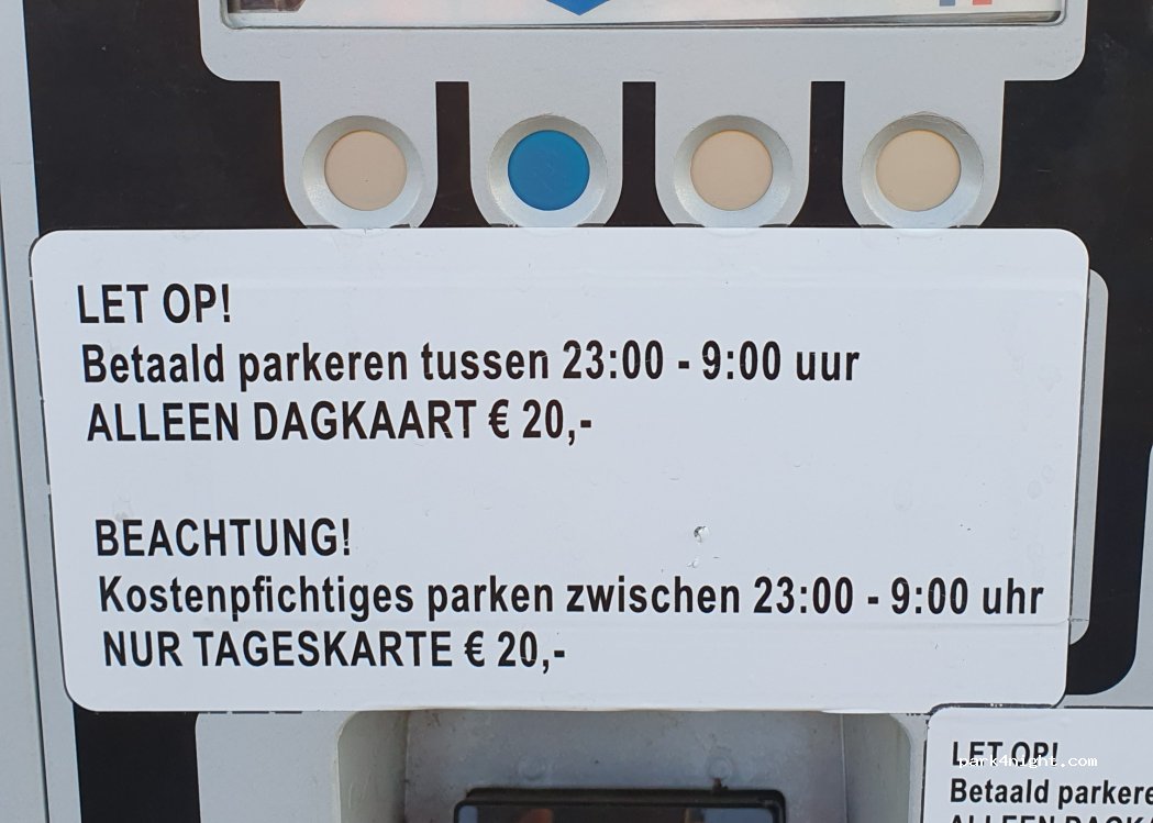 Der Parkplatz liegt direkt hinter dem Deich. Zum Strand sind es nur 2 Minuten. Im hinteren Bereich des Parkplatzes, der tagsüber kostenlos ist, kann man für 20 Euro von 23:00 bis 9:00 Uhr übernachten. Das Ticket für die Übernachtung kann jedoch erst ab 23:00 Uhr am Parkautomaten gekauft werden! Kontrolliert wird früh morgens. Es gibt keinerlei Service.