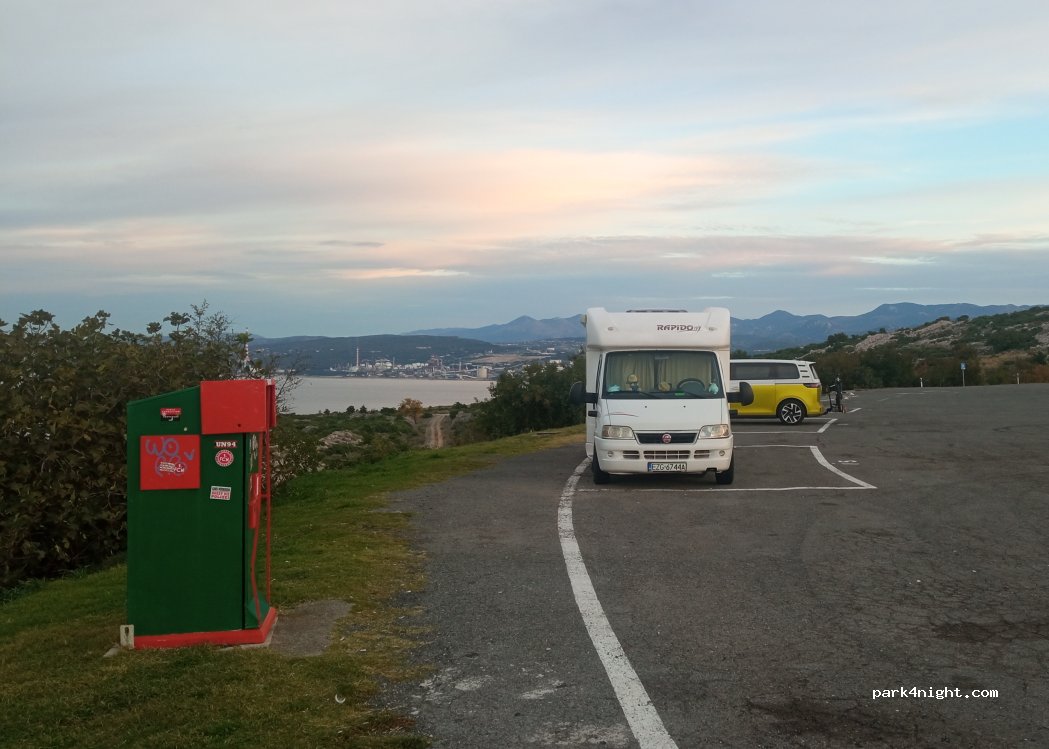 È solo un grande parcheggio assolato, senza servizi e rumoroso con vista su una raffineria. Va bene per una notte se non avete trovato sistemazione migliore a Krk
