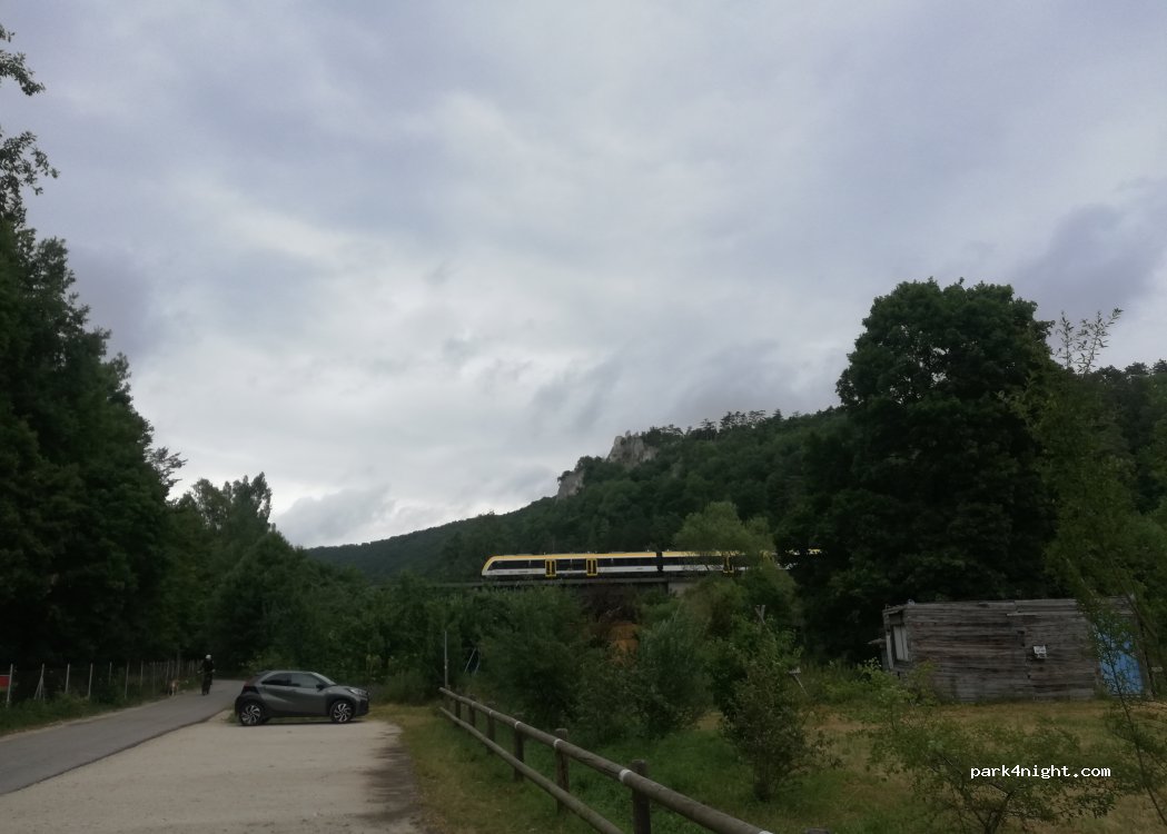 Wir waren hier für eine Nacht und haben in unserem PKW übernachtet. Wir haben ganz hinten geparkt deswegen gab es so gut wie keinen Verkehr. Nachts fahren Züge auf der Brücke wir sind aber nicht davon wach geworden obwohl wir sehr Geräuschempfindlich sind. Man kann von dort aus direkt wandern gehen und sich danach im Fluss abkühlen.