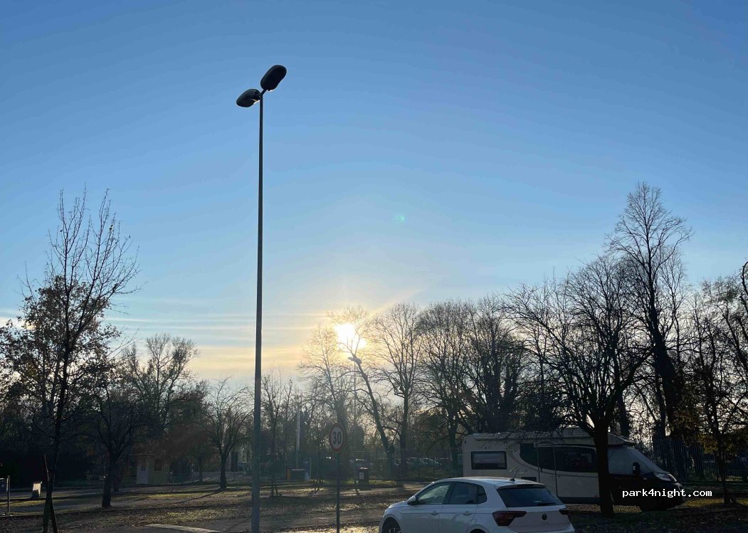 Parking at the rear of Linate airport. Shade of trees. Daily price. Very close to a large man-made lake with wakeboard facility and artificial wave.