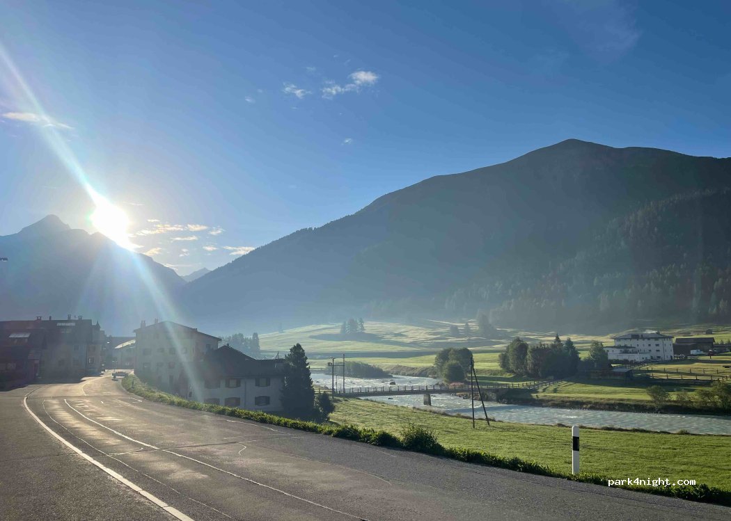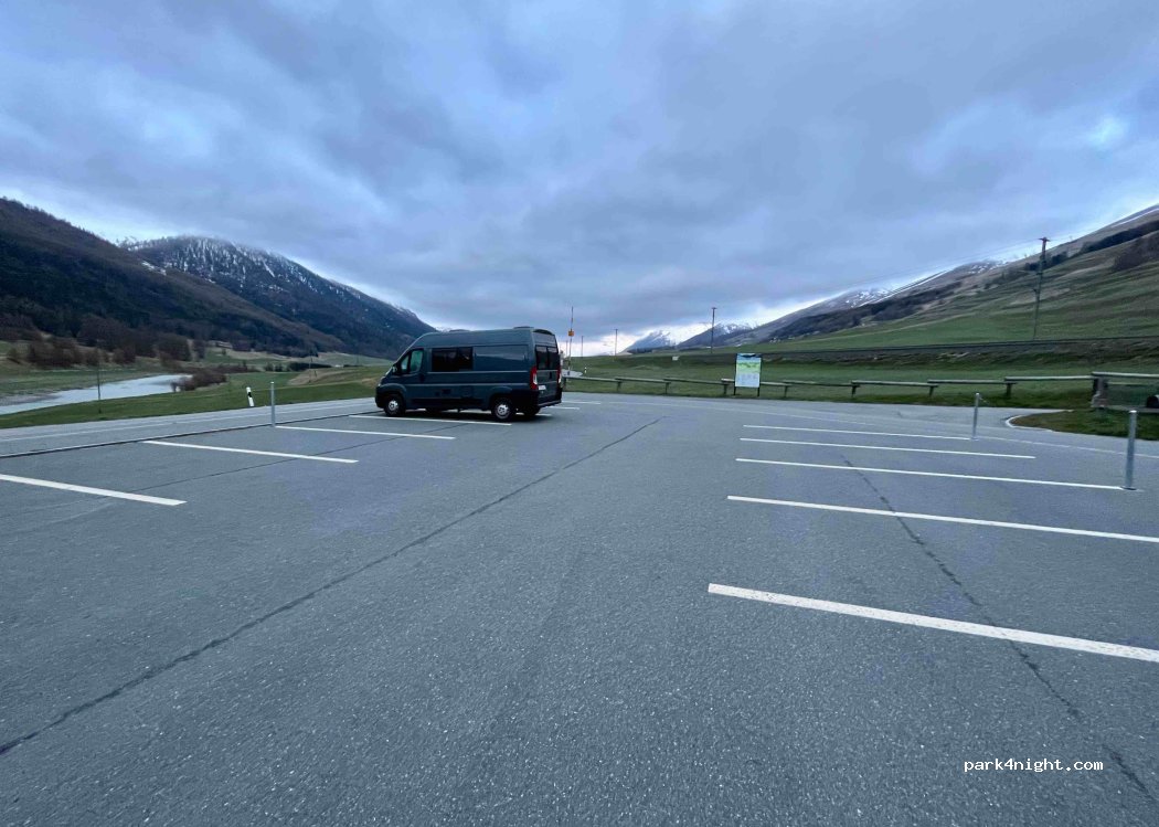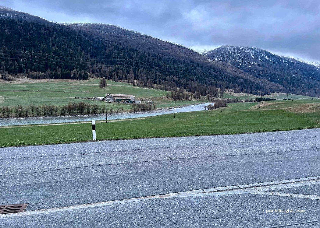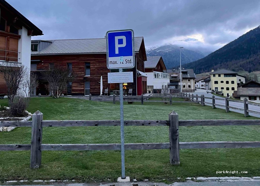 Ein kleiner Parkplatz am Ortseingang von S-Chanf, ideal für einen kurzen Aufenthalt auf der Durchreise. Maximale Parkdauer 12 Stunden, kostenlos, keine Verbotsschilder. Der Parkplatz bietet eine tolle Aussicht auf die Bergwelt und liegt etwas abseits der Hauptstrasse, neben der Bahnlinie. Da sich rund um den Parkplatz mehrere Wohnhäuser befinden, verhalten Sie sich bitte sehr rücksichtsvoll und leise.