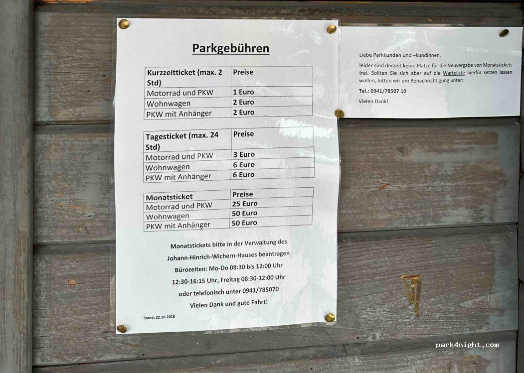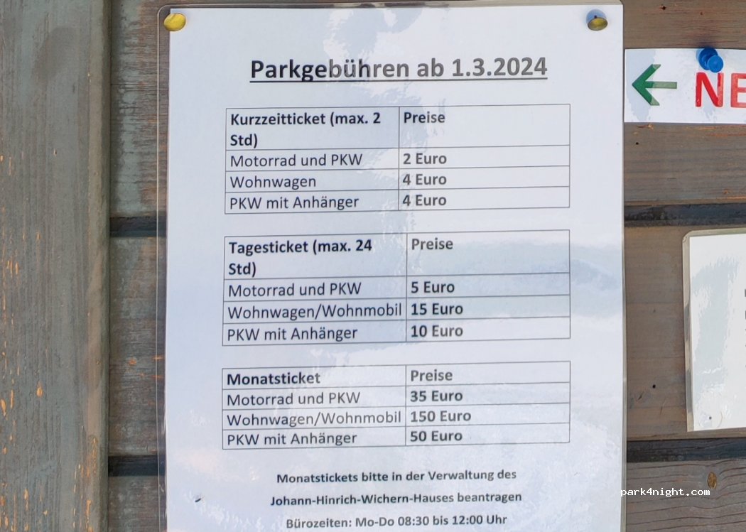 24h kosten immer noch 6€ in die Vertrauenskasse. Bitte auch zahlen damit der Platz erhalten bleibt. Tagsüber viele PKW, von Leuten, die in der Umgebung arbeiten.