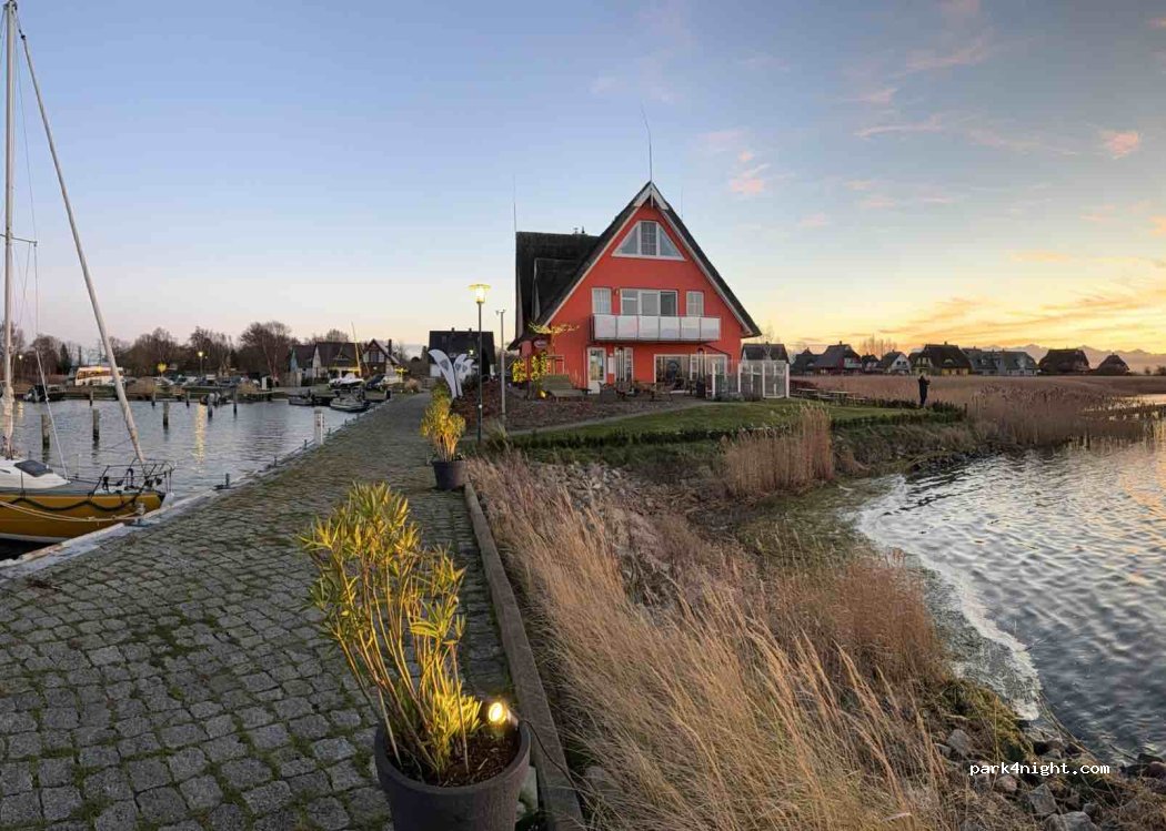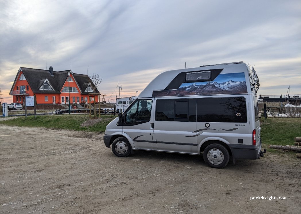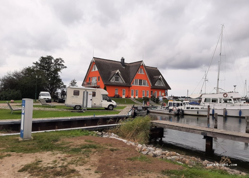 Stellplätze genau am kleinen Yachthafen mit direktem Blick auf den Bodden. Toiletten und Dusche sehr gepflegt. Strom muss von den Stationen für die Boote geholt werden. Ein Wasseranschluss ist beim Gebäude. Bezahlung beim sehr netten Hafenmeister im Gebäude. Aufgrund des Hafenbetriebs ist oft was los aber ansonsten ein entspannter Stellplatz für einen Zwischenstopp oder eine Nacht. Moderne Hausboote und ein führerscheinfreies Boot können vor Ort gemietet werden. Perfekter Zugang für Watangler. Ein kleiner Spielplatz ist auch direkt neben dem Stellplatz.