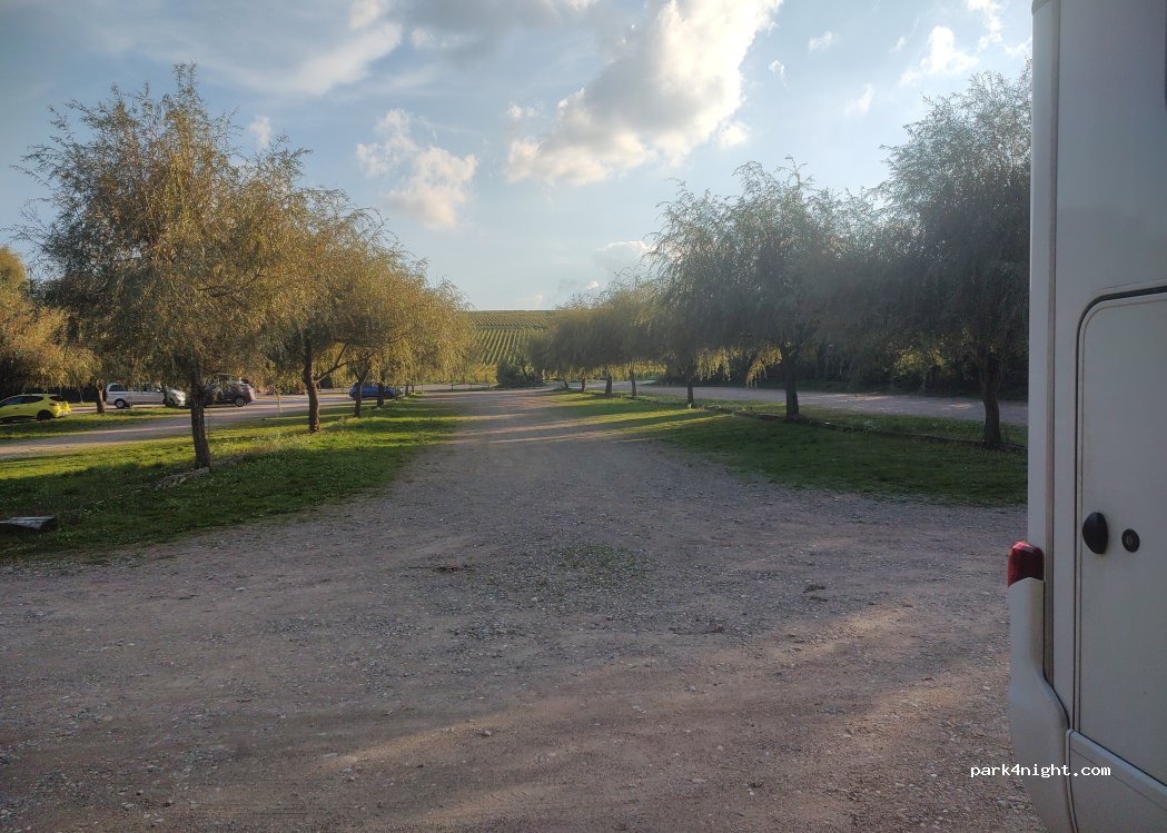 At the end of the parking lot there are about 13 pitches for motorhomes. We were there out of season and unfortunately the grass was a high and it wasn't very well maintained, but anyway it was clean and fine for us. We were there free of charge with a few others motorhomes. It is a bit isolated and we didn't feel very safe but we still had a pleasant stay and nobody bothered us, it was quiet.