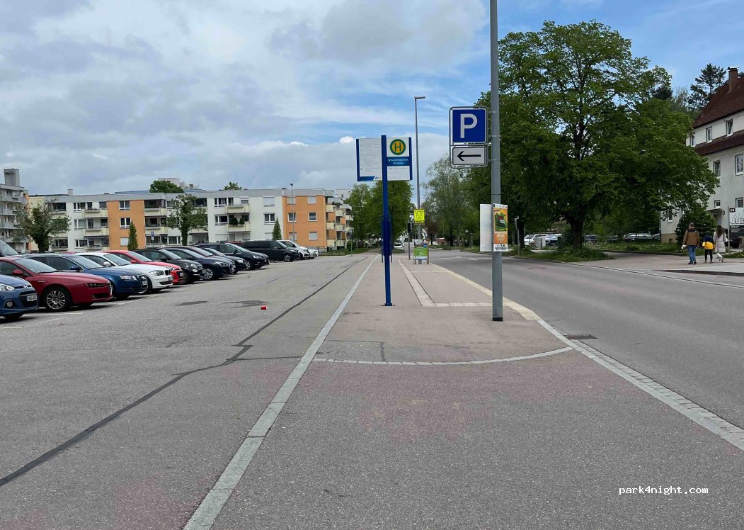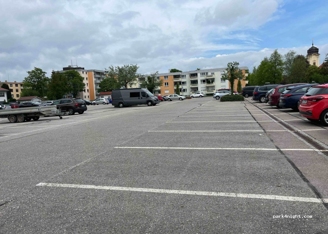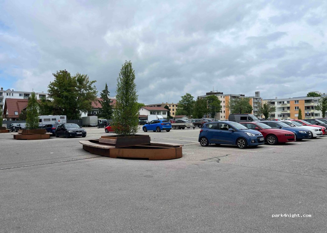 Parking lot near the center, you are standing straight. Close to a museum, lots of restaurants perfect for one night or short stay. Free parking.