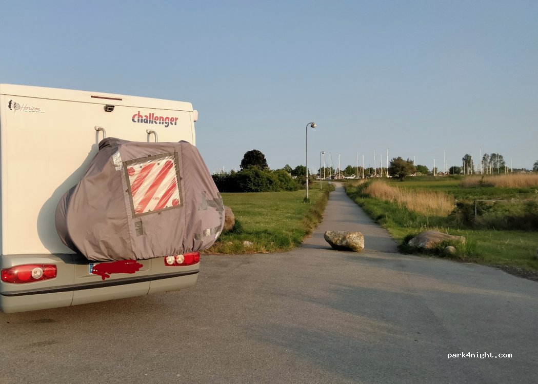 Parking proche d’un joli pet port. Un grand espace vert. C’est très calme, les passants sont souriants, pour une nuit c’est juste très bien !