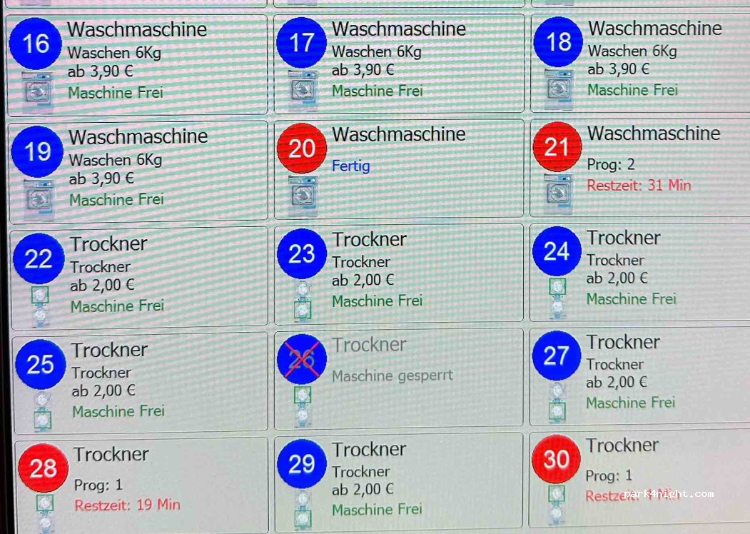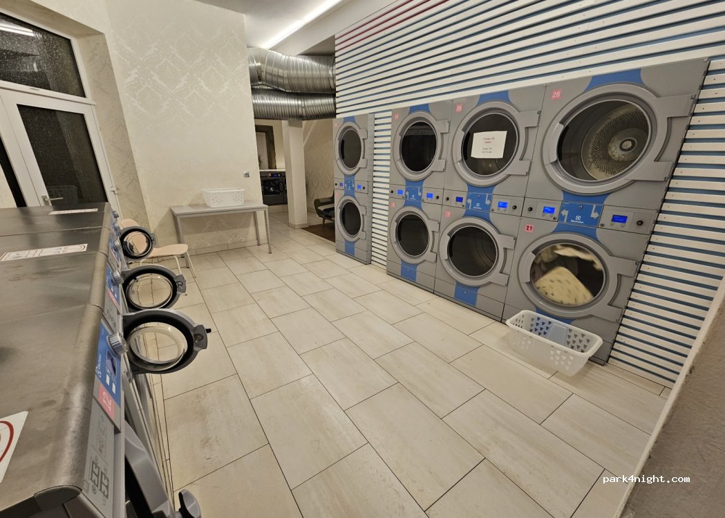 lavandería amplia con bastantes lavadoras/ secadoras. ** las secadoras tienen restos de plásticos negros de otros usos por quizás secar a alta temperatura, lo cual al utilizarla de nuevo con la temperatura se vuelven calentar esos restos y los deja en la ropa limpia, están casi todas las secadoras igual, se puede ver bien observando el bombo por la parte interior .