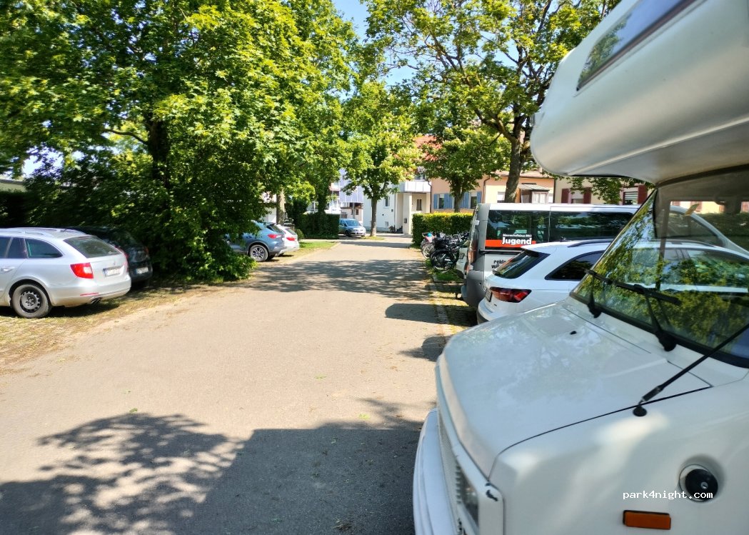 Parkplatz des Sportzentrums ideal zum Übernachten. sehr ruhig in einem Wohngebiet.