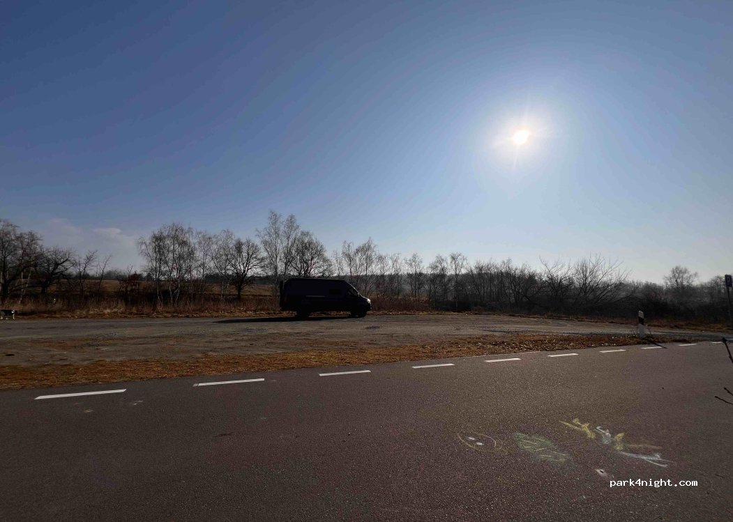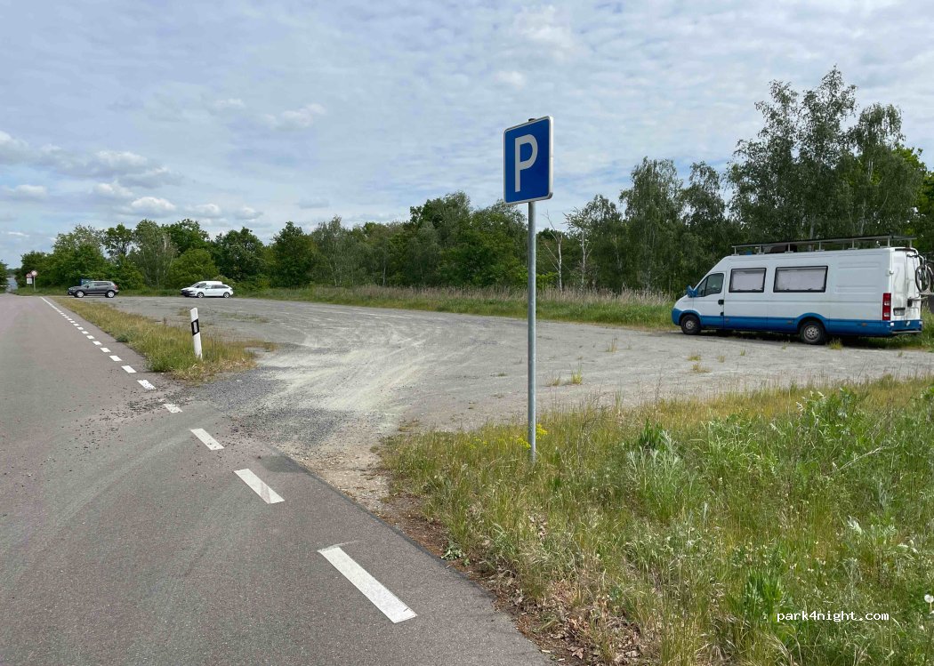 Schotterparkplatz am Ende der Straße. Gebührenfrei und ohne Zeit- / Gewichts- / Höhenbegrenzung. Fläche recht eben und idyllisch gelegen. See mit überdachter Sitzmöglichkeit in ca. 1-2 min. entfernt. Als Ausgangspunkt für Radtouren, Wanderungen, Baden etc. oder zum Übernachten bestens geeignet. Nachts herrliche Ruhe und keine fremde Lichtquelle weit und breit.