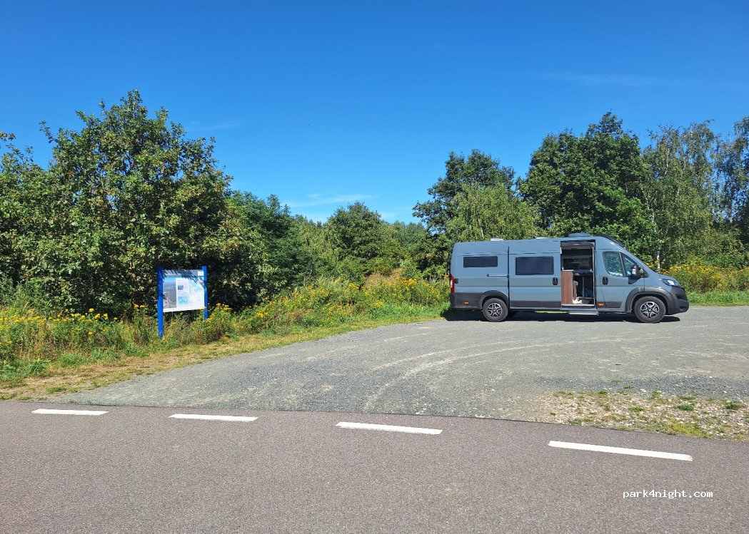 Sehr ruhiger und entspannter Platz. Tagsüber viele Radler, Fußgänger, Schwimmer, Nachts dann sehr ruhig. Platz halbwegs gerade und durch die Natur drumherum sehr idyllisch. Parken ausdrücklich erlaubt ohne Zeitbegrenzung. See in 1 Minute zu erreichen, geeignete Badestelle in maximal 5 Minuten. Toller Platz für eine Nacht!