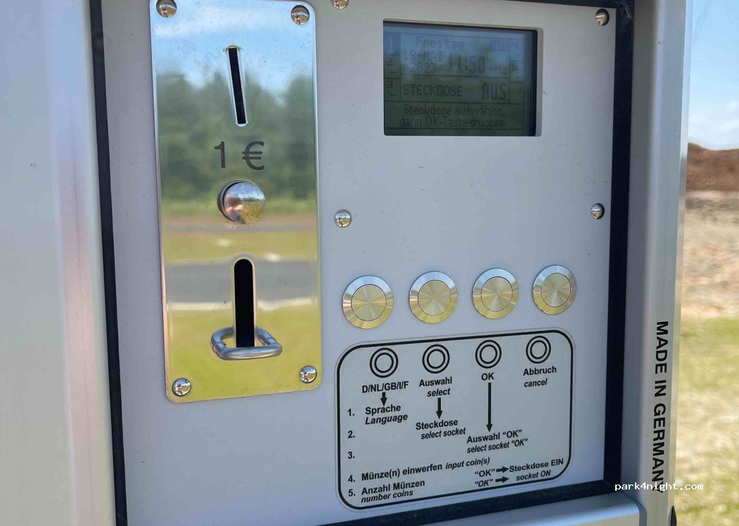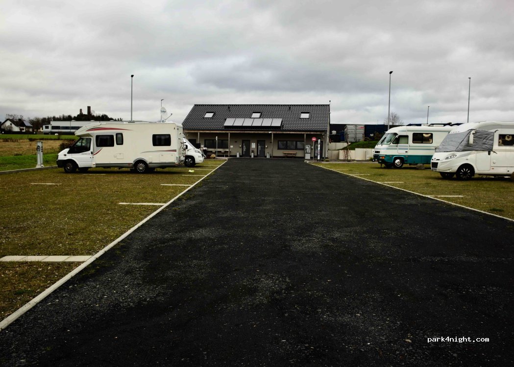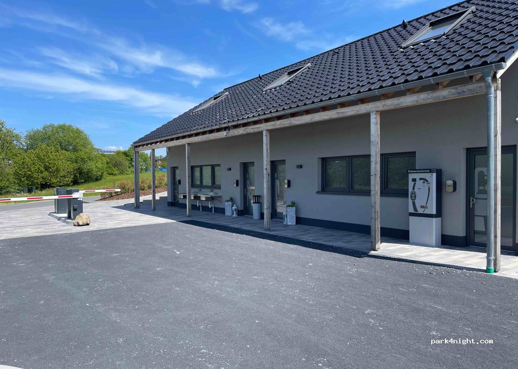 The B49 caravan and motorhome site is open all year round and around the clock. The cost of a parking space is EUR 19 per 24 hours. Payment is made in cash at the parking ticket machine. A total of 29 parking spaces are available, all of which are parceled out. The parking space is located on the outskirts of the village in a quiet location. A gas station and supermarket are within walking distance. The surface consists of gravel turf and is mostly flat. Free WLAN is available. Pets, especially dogs, are allowed. The pitch is under video surveillance. Barbecues are permitted with gas, coal or electricity. The pitch is barrier-free and floodlit. The supply of water and the disposal of gray water are included in the price. Electricity is charged at 50 cents per kWh. Disposal of the cassette toilet is also included. WC and shower as well as a wheelchair-accessible sanitary cubicle are available.