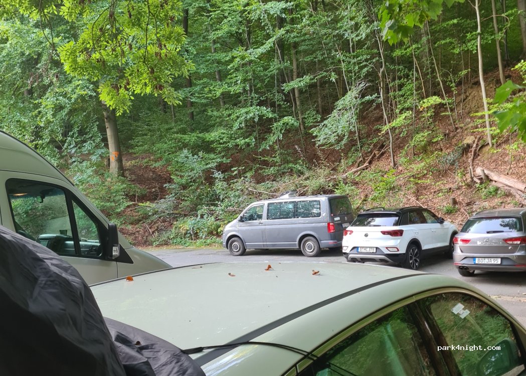 Sehr, sehr ruhiger Platz zum Wandern und Übernachten. Keine Verbotsschilder. 7,0 m Wohnmobil, längere sind nicht empfehlenswert. Achtung! Wenn vollgeparkt keine Wendemöglichkeit.