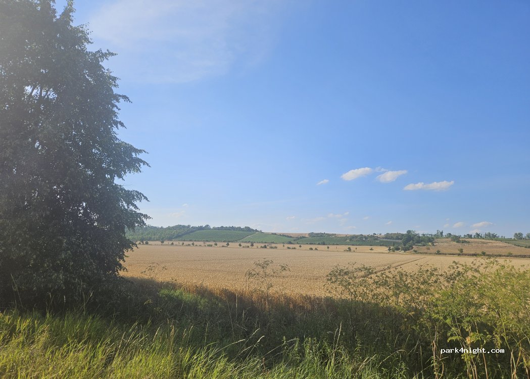 Schöner Stellplatz auf einer Wiese...toller Blick zum Weinberg... Für 1 Nacht völlig ok Strom und Wasser hab ich nicht gebraucht... Zum See ist es nicht weit... Bin späten Mittag am nächsten Tag los...