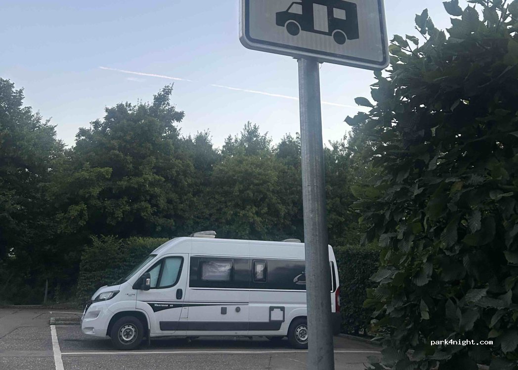 Topp karakter for å være gratisplass! Store gode plasser. Området er omkranset av hekk, så man blir litt skjermet fra forbipasserende og de som parkerer vanlige biler på resten av parkeringsplassen. Tømming av toalett er gratis. Man kan betale for strøm og vann om man ønsker det. Man kan overnatte gratis 3 netter. Kommunen har hengt opp info om blant annet svømmehall i nærheten , lurt.