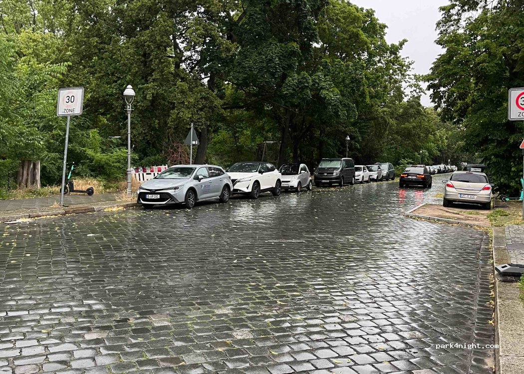 Cute roadside parking lot in a quiet 30-zone, nice residential area. I slept here in the car one night and was lucky enough to be right next to the green park island. Fill up with baked goods and a toilet within walking distance. In the evening I had a sauna in the Vaibali Spa and then I floated home there :)