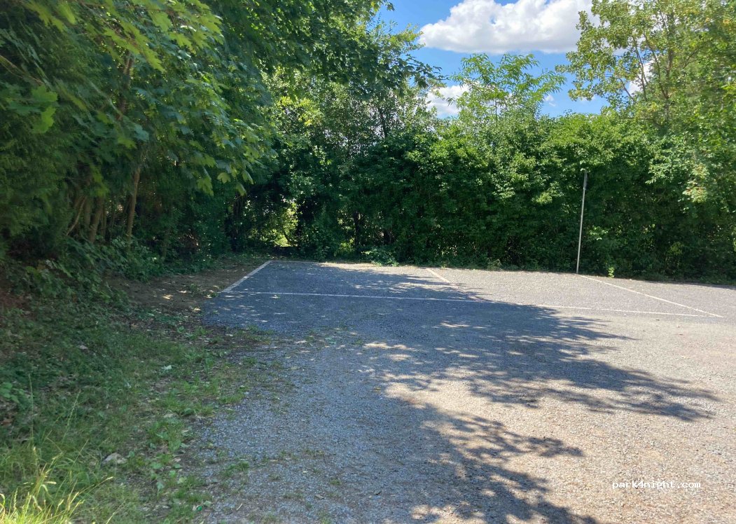 Kleiner Parkplatz direkt am Waldrand mit zwei markierten Stellplätzen ohne VE. Nicht für Dickschiffe geeignet.