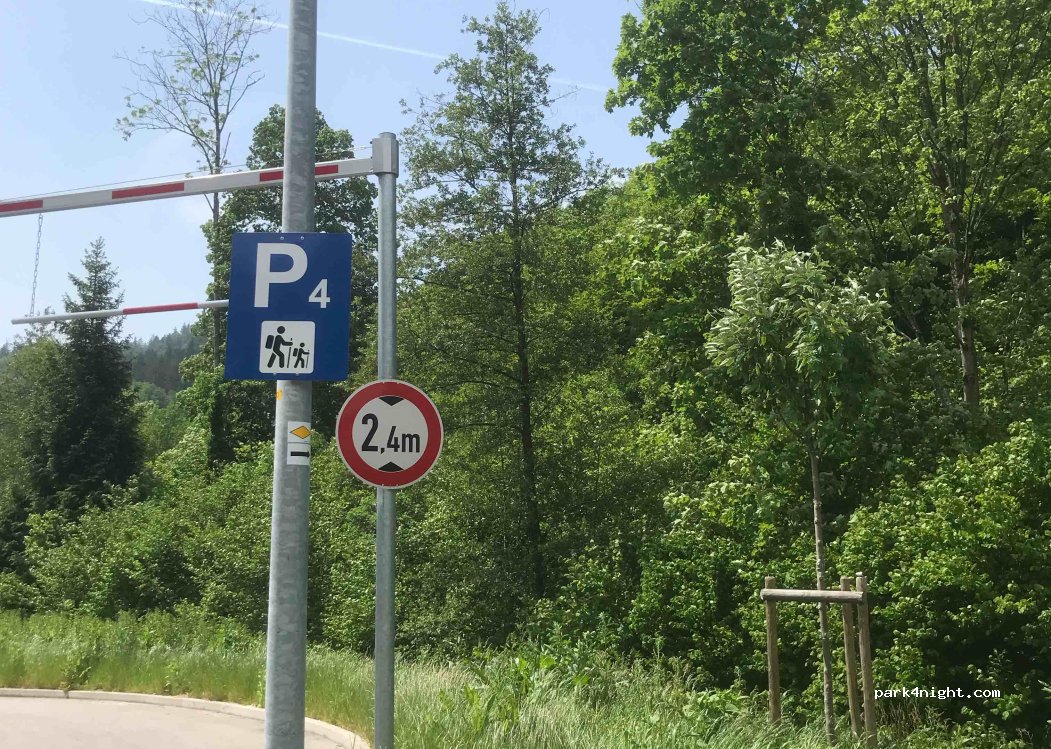 Il s'agit d'un nouveau parking à la périphérie de la ville, marqué P4 Naturerlebnisbad. Il y a une limite de hauteur de 2,4 m. WC très propre à la gare à 5 minutes à pied du centre ville. Belles boulangeries et magasins de la ville et point de départ de nombreuses randonnées étonnantes dans la région.