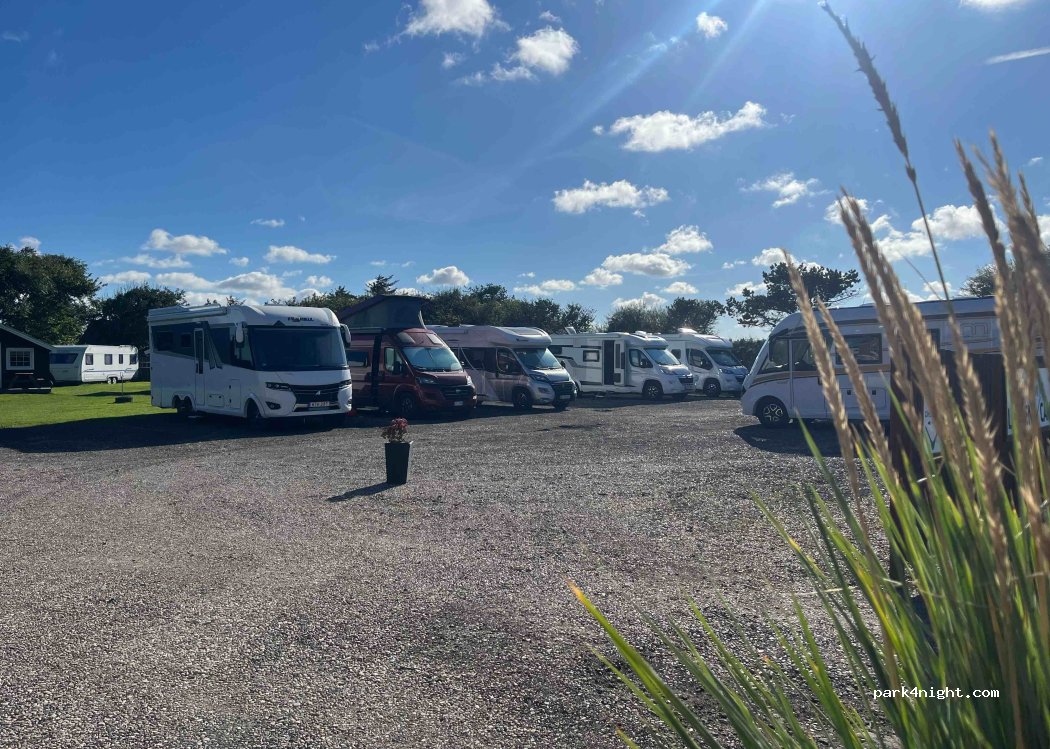 Parking with possibility of late arrival. No gate. Just pay via the QR code on the sign, even if you arrive late. Level gravel parking for 10-12 motorhomes, near Løkken. Just to the right in the driveway. Only 900 meters from Denmark's beautiful Løkken Beach. On the nextdoor campsite they offer everything you need for a comfortable stay. The surrounding area offers plenty of attractions to explore. Even supermarket just 800 meters away. Perfect for families and couples. VERY friendly staff. Even possibility to only empty gray water, toilet and garbage and get fresh drinking water. They only ask for a small fee of €7.00
