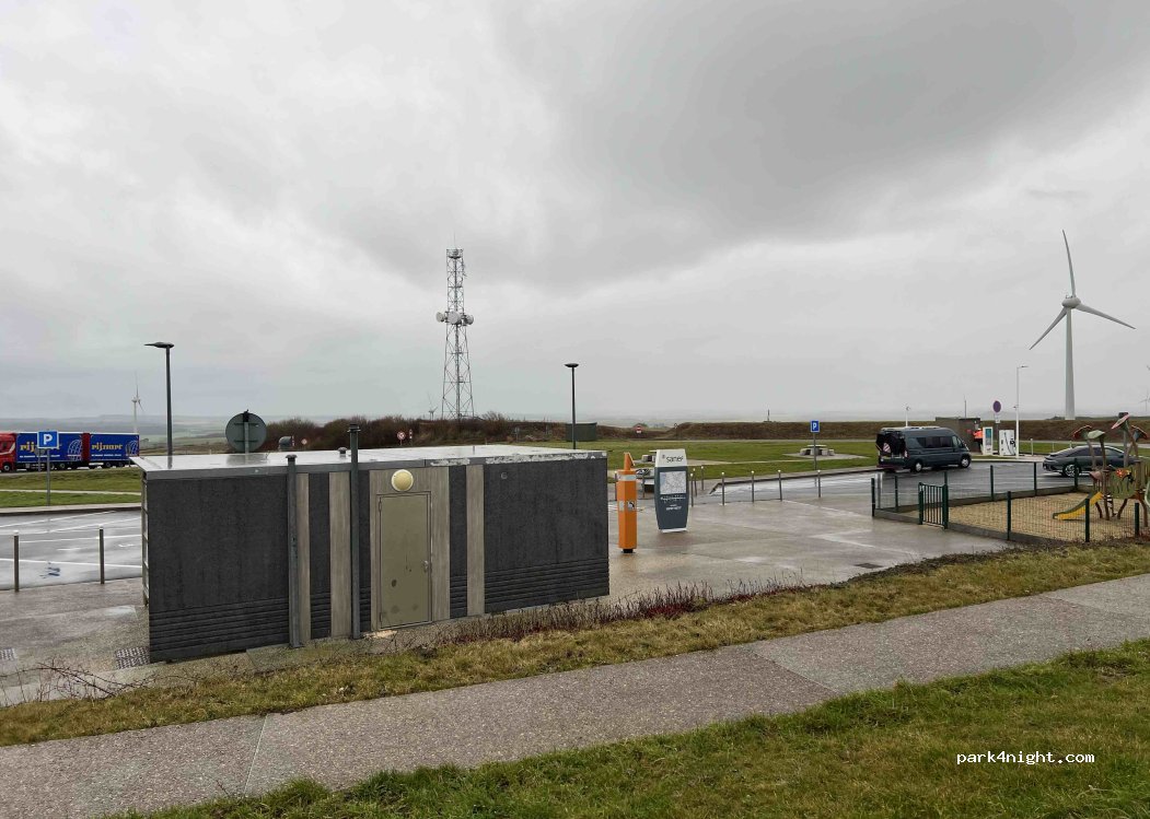 Aire très calme en bord de l’a16. Idéal pour 1 nuit . Sanitaires très propres, table picnic et Aires de jeux pour les enfants. Pour ceux qui l’empruntent direction la Bretagne, vous aurez même vu sur la mer !!!