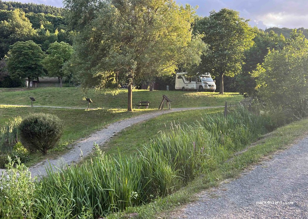 Waren hier 3/7/25 stonden helemaal alleen, mooi plaatsje op het gras. Op de achtergrond geluid van de snelweg, maar hebben rustig kunnen slapen. Bakker op +/- 600 meter in het dorp.