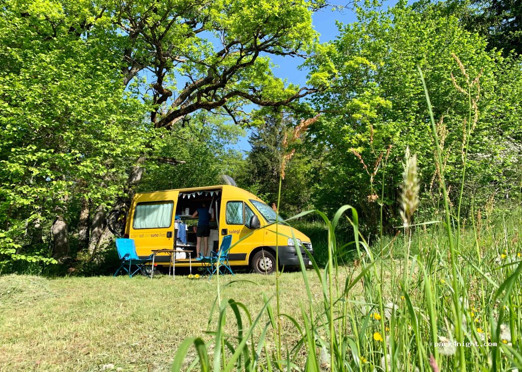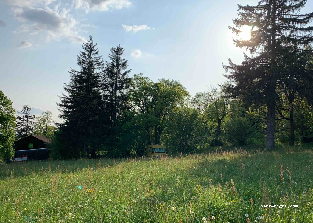 wunderschöner, ruhiger ort mit ca 3 van stellplätzen in der nähe des hofes. weite sicht auf felder. yvonne und silvan sind sehr aufgeschlossene und hilfsbereite gastgeber/in. idealer ort zum wandern oder einfach sein. abends klarer sternenhimmel (wir sahen sogar 2 sternschnuppen). für essen muss man vorsorgen, vom hof gibt es bio-eier. im hof: einfache, saubere wc/dusche/abwaschmöglichkeit.