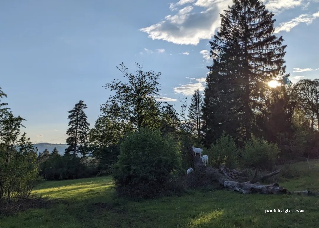 Ein wunderbarer Ort im grünen auf einer Wiese, die genug gerade ist zum stehen. Isabelle, Silvan und Lissi sind sehr sympathisch, geben gerne Auskunft über den Hof und die Tiere und sind sehr unkompliziert. Der Platz ist nahe bei Bäumen die Schatten spenden. Weniger geeignet für sehr grosse Womos. Die Zufahrt ist auf einer einspurigen Strasse zwischen anderen Höfen durch, die Anfahrt lohnt sich.