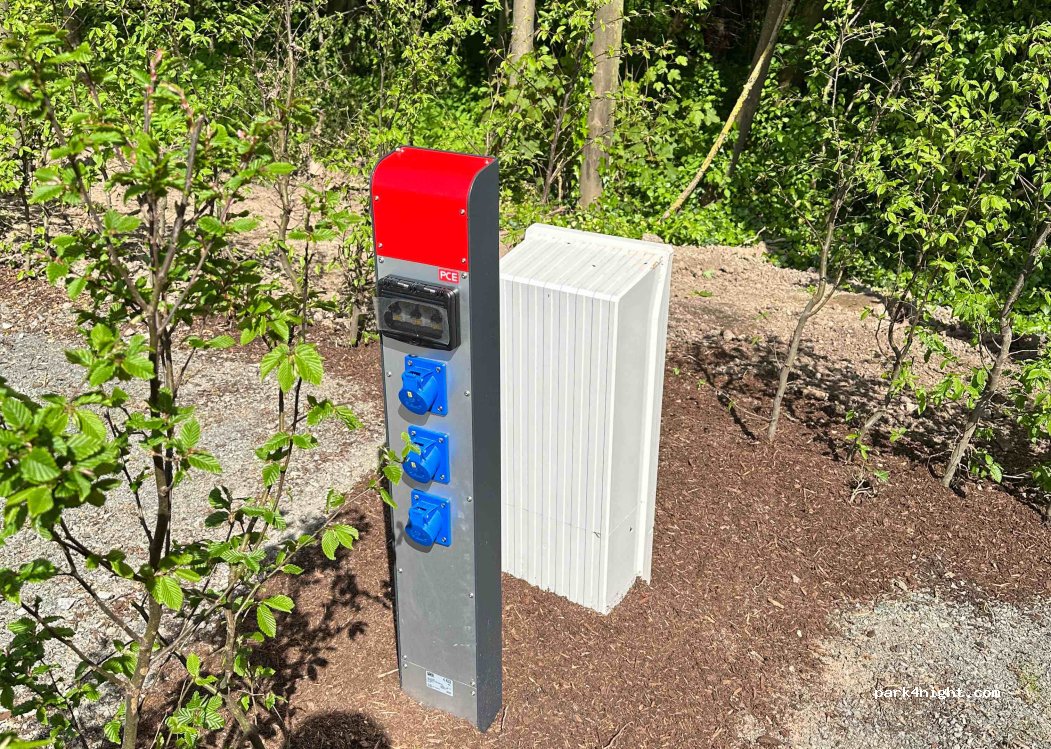 Electrical connections are available on site. Electricity is included in the price. Water can be purchased directly from the nearby outdoor swimming pool. During opening hours (approximately Whitsun until the end of September), the entire infrastructure (showers, restrooms, swimming pool, solarium, small café) can of course be used for an additional fee.