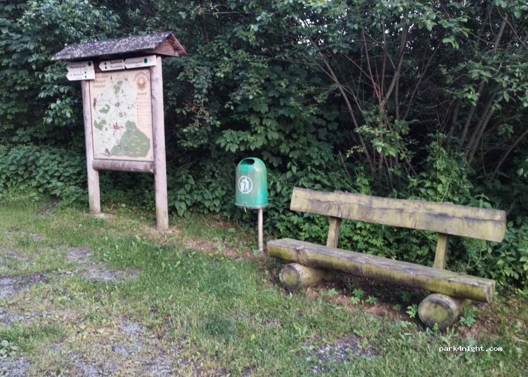 Wir stehen trotz Pfingstferien und langem Wochenende ganz alleine hier. Der Platz ist komplett leer und wie beschrieben fast eben. es befindet sich eine Wanderkarte und ein Abfalleimer am Wanderparkplatz. Gelegentlich kommen Spaziergänger, Jogger oder Radfahrer vorbei. Autos sehr selten. Die naheliegende größere Straße ist sehr wenig zu hören. Von dieser Seite ist der Platz nicht einsehbar.