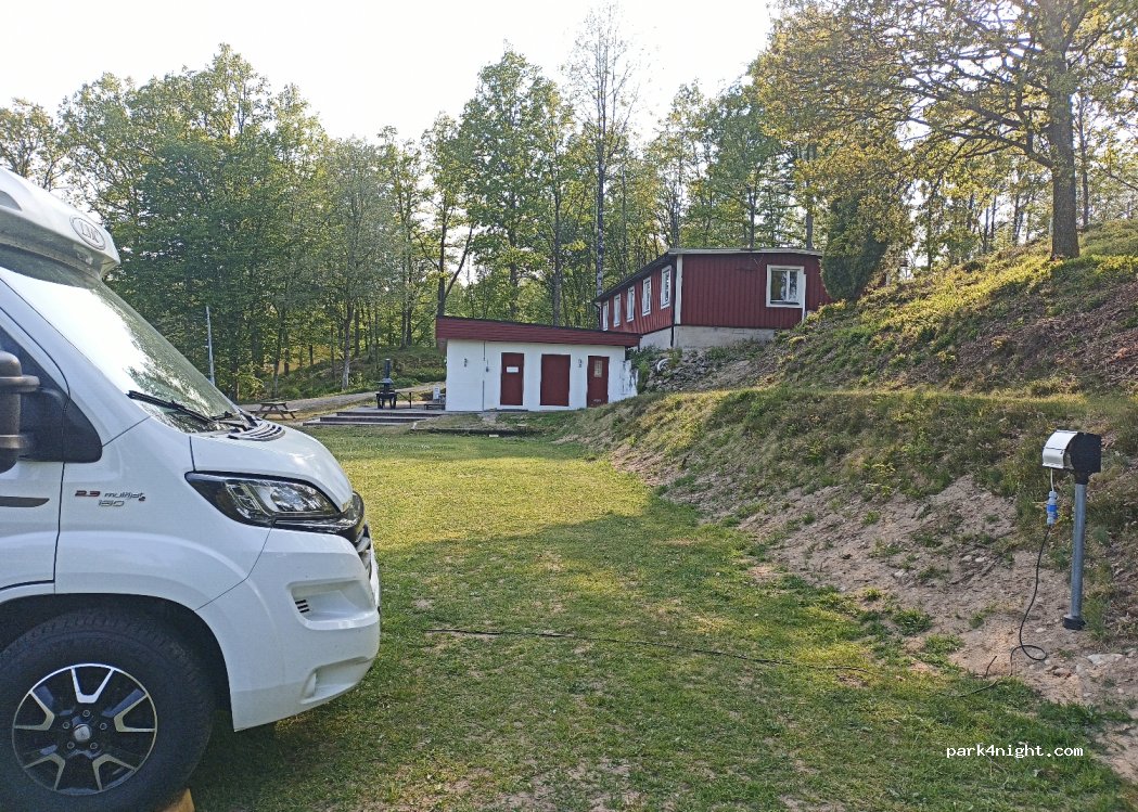 Ein sehr schöner Stellplatz im Grünen. Wir standen hier für eine Nacht ganz allein. Sanitäranlagen sind alt aber sehr sauber. Bezahlung über die App Swish oder aber bar in Briefkasten. Auch in Euro möglich.