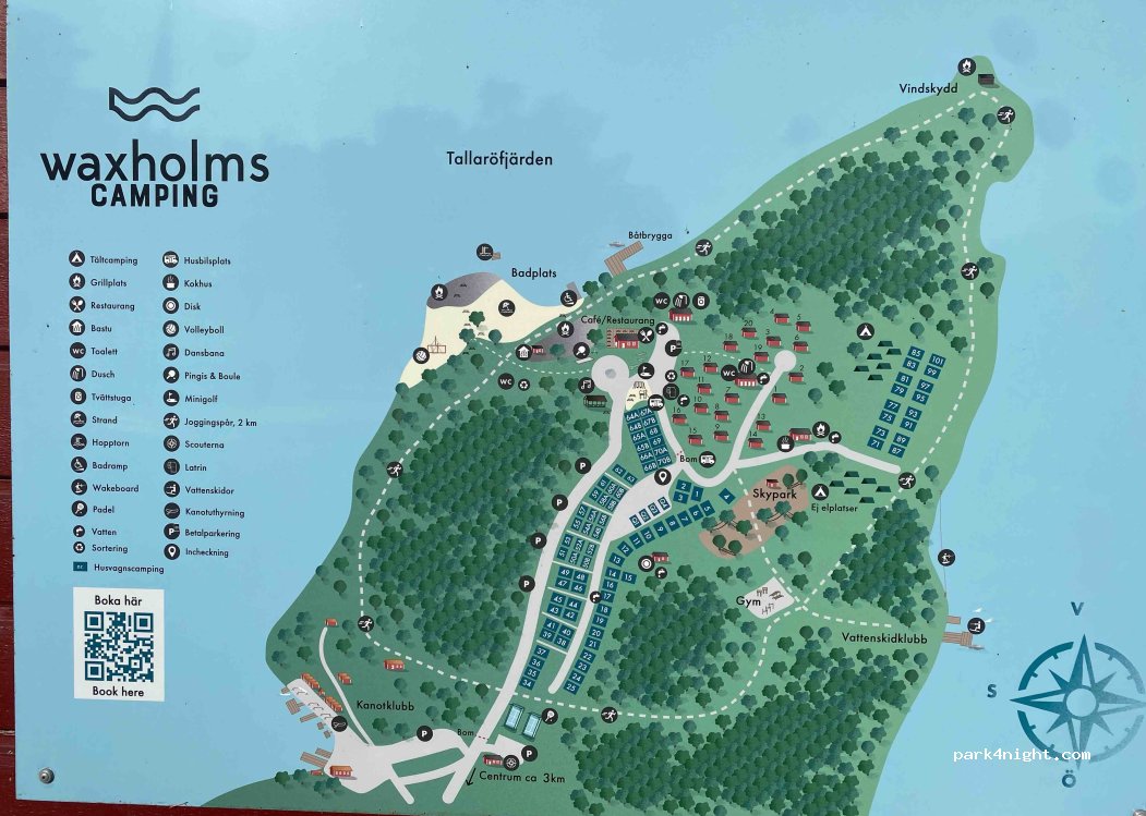 Buchung nur online. Der Trick: die Buchungsseite muss separat nochmals in "deutsch" aktiviert werden. Die Codes erhält man Zahlung. Der Platz ist großzügig, nicht der Preis SEK 450,00 ist völlig überzogen. Nichts war geöffnet. Kein Café, kein Bistro, nicht der Skypark und auch nicht der Kanuverleih um die Ecke. Grauwasser Entsorgung nur mit Seitenablass möglich. Maximal SEK 250,00 incl Strom