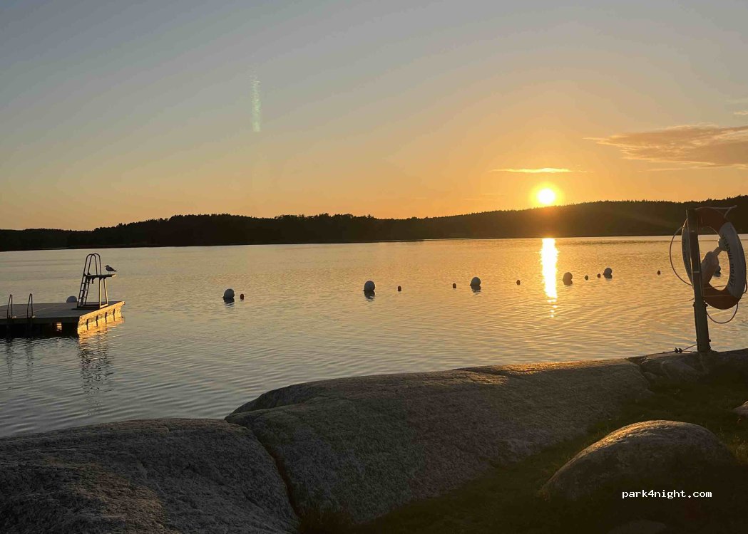 Schöner Badestrand. Duschen und WC ausreichend. Gute Verbindung nach Stockholm. Für 50€ die Nacht nicht ganz so Preiswert.