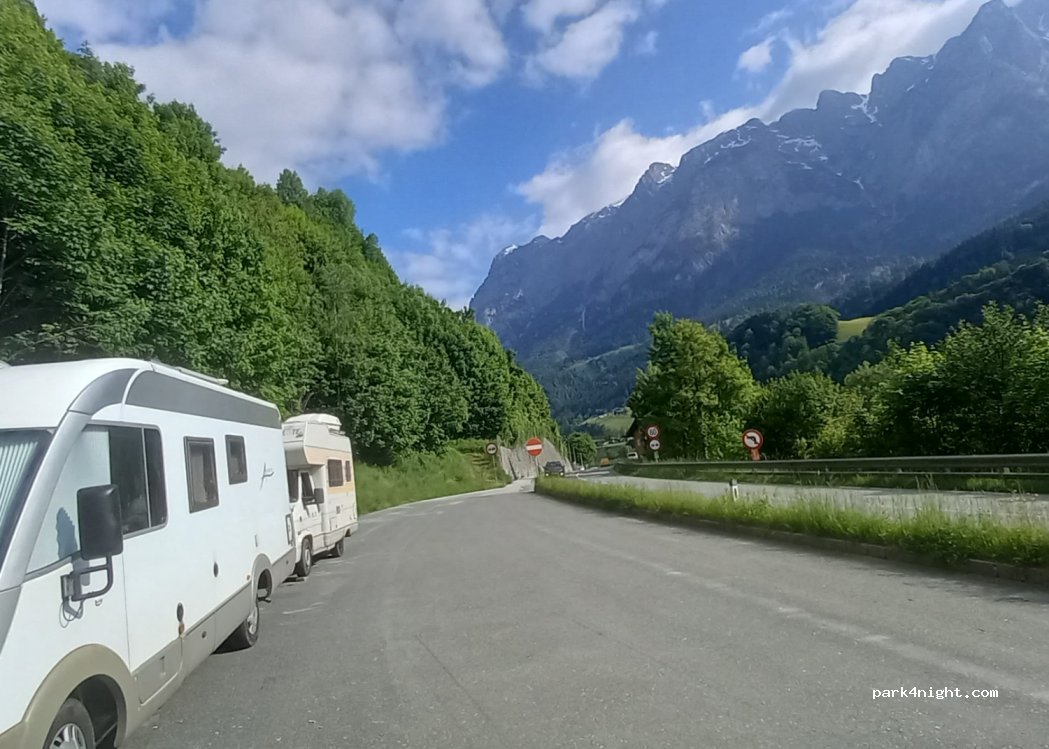 Good place for one night. The road was calmer at night. Not far from the ice caves and the castle. Place for 4 motorhomes. No prohibitions.
