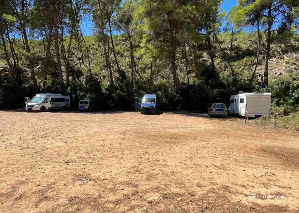 Buen aparcamiento para disfrutar de esta maravillosa cala llena de magia, el parking es genial porque está apartado de la carretera, la noche muy bien aunque había mosquitos, por favor, llévate tu basura.