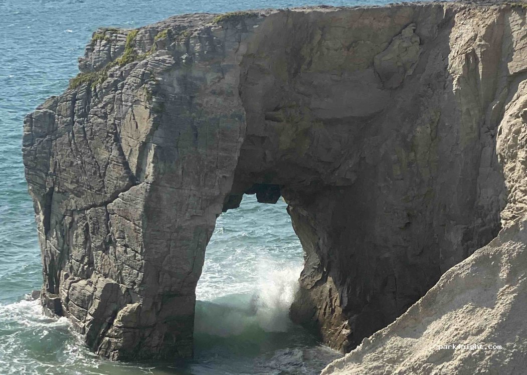 Nous avons passé une nuit très calme et agréable. D’autres vans et voitures étaient sur le parking. Attention aux voitures basses, car il y a quelques trous, mais plats dans l’ensemble. Pas de toilette donc des petits papiers sont posé au sol. Chiens acceptés. Beaux lieux avec falaise et chemin tracé. On peut voir l’arche du port blanc