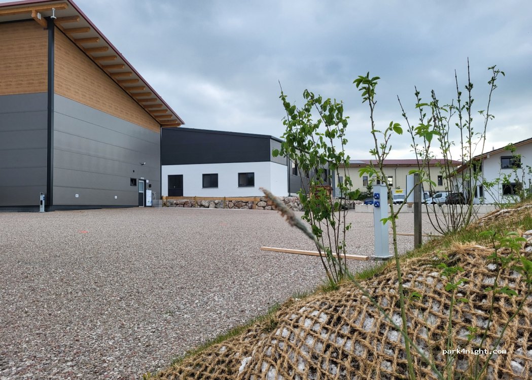 Ein kleiner Stellplatz im Industriegebiet, angrenzend sind Feld und Waldwege, ca. jede 30min fährt ein Hupender Zug vorbei. Online Ticket für den Stellplatz hat super funktioniert. Sanitär-Räume sauber und modern. Vielen Dank.