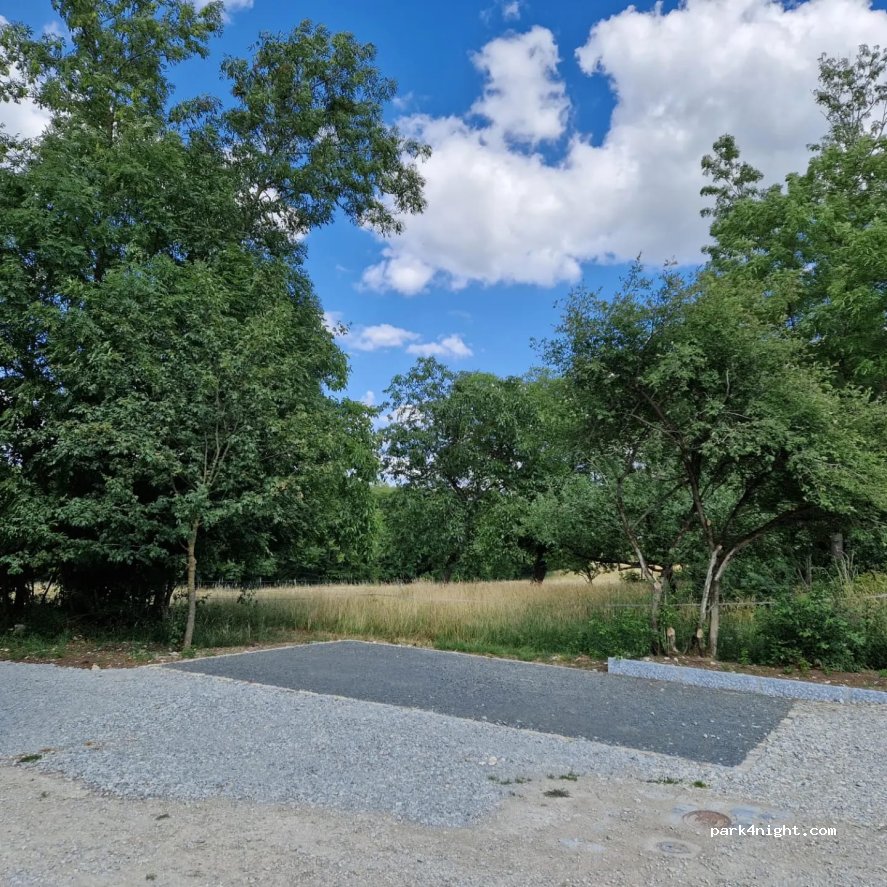 Haben sehr spontan angerufen und einen Notplatz angeboten bekommen. Als wir dann ankamen wurde uns ein Platz auf einer Obstwiese angeboten. Mit Keilen super Platz in der Idylle! Super SB- Laden und super freundliche Familie!