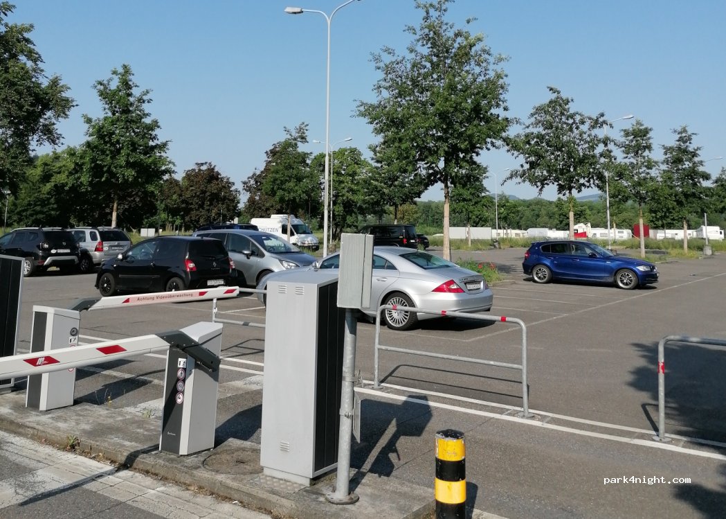Sehr großer Parkplatz. Einfahrt durch Schranke gesichert (Ticker ziehen), für Kastenwagen ok, Breier kann problematisch sein