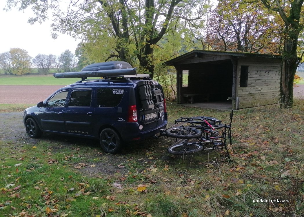 Es ist ein Parkplatz an der Straße, diese war nachts wenig befahren. Der Platz ist allerdings leicht abschüssig, aber für eine Nacht ok. Man kann auf einem angrenzenden Feldweg spazieren gehen.