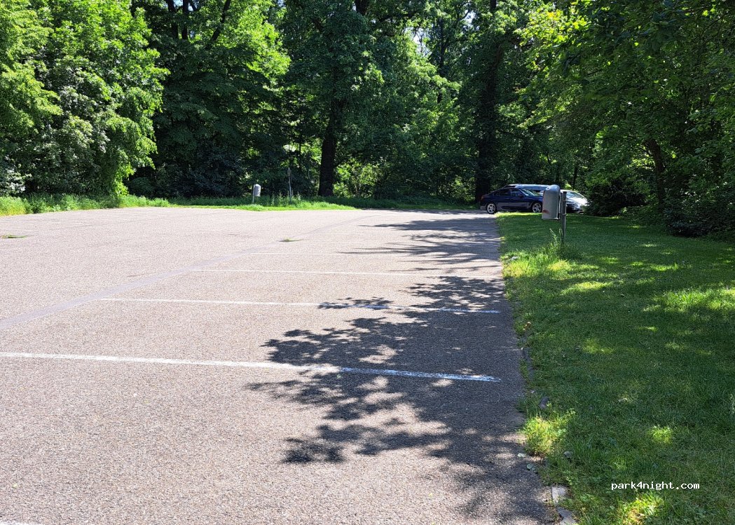 Parkplatz am Waldrand, eine Seite für Friedhof reserviert. Biergarten vom Fußballverein ca. 100Meter entfernt.