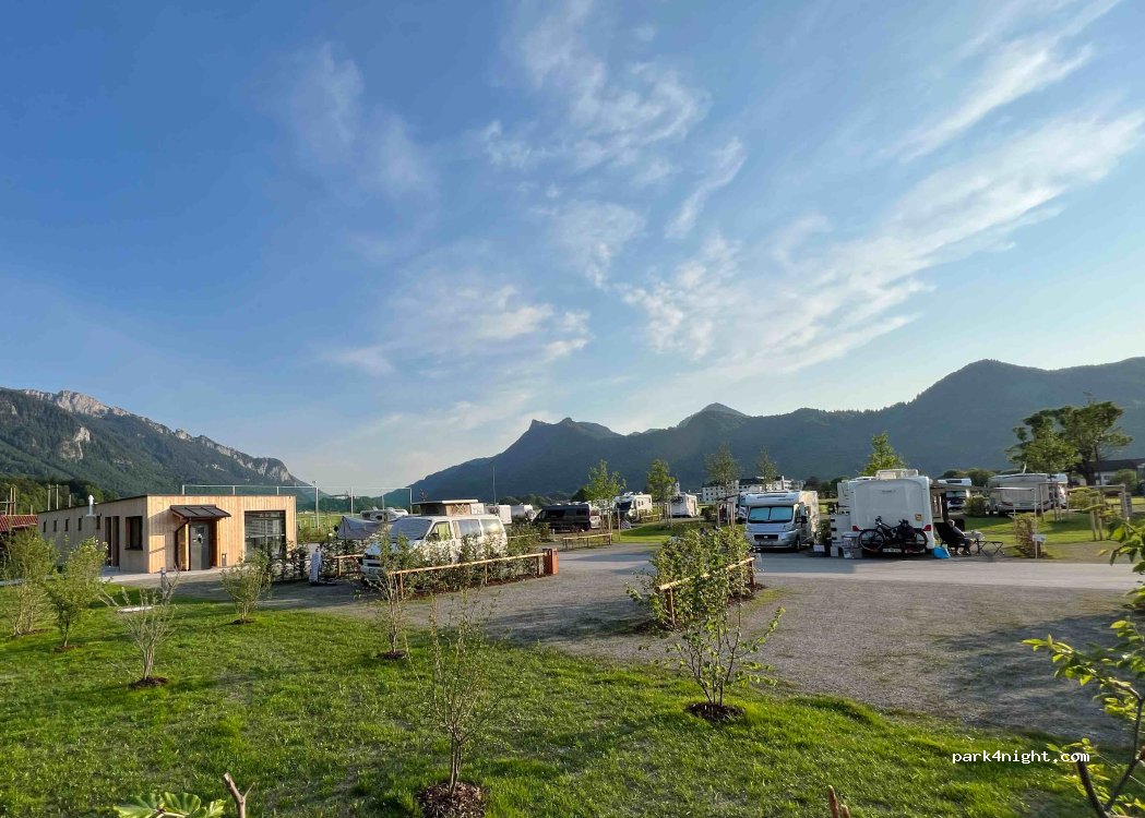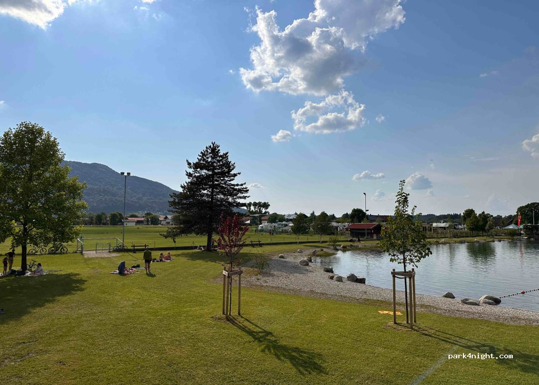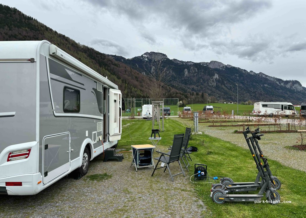 Nieuwe, goed ingerichte camperplaats. Je kan je plaats gelukkig vrij kiezen ( 1 kant ligt naast sportveld) Probleemloos elektronisch in en uitchecken. Wasmachine/droogkast/eet en drankautomaat prima. Mooi zicht op de Alpen. Fijne plaats om enkele dagen te vertoeven en te verkennen. Café Paulli in de buurt heeft heel lekkere taart en koffie. Zwemmen kan in buitenbad.