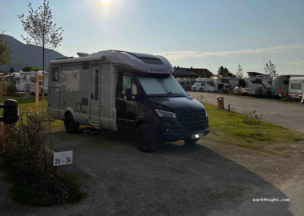Perfekt og let tilgængelig plads med dejlig alpeudsigt. Udenfor pladsen gode aktivitetsmuligheder for børn (badesø, fodboldbane kæmpe klatrestativ). Display udenfor som viser antal ledige pladser. Nummerplade scannes, når man kører ind gennem bommen. Så vælger man den rigtige nummerplade på selvbetjeningsskærmen. Fine, fine faciliteter - lige noget for os