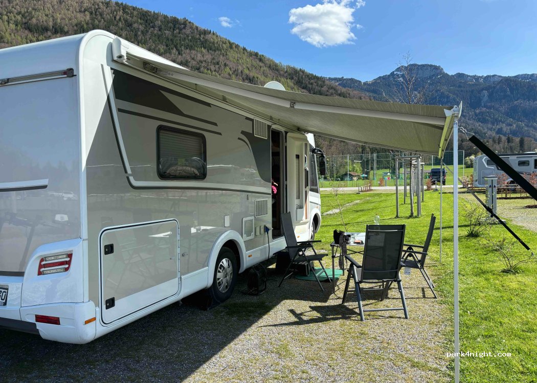 Wunderschöner neuer Wohnmobilstellplatz mit tollem Alpenblick Panorama. Viele Serviceleistungen und super Naturschwimmbad.
