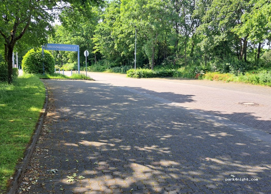 Parkplatz zwischen Wohngebiet und Sportstätten. Kein V/E. Ruhig gelegen. Stellplätze sind schmal für PKWs markiert. Eher nichts für lange WoMo's.