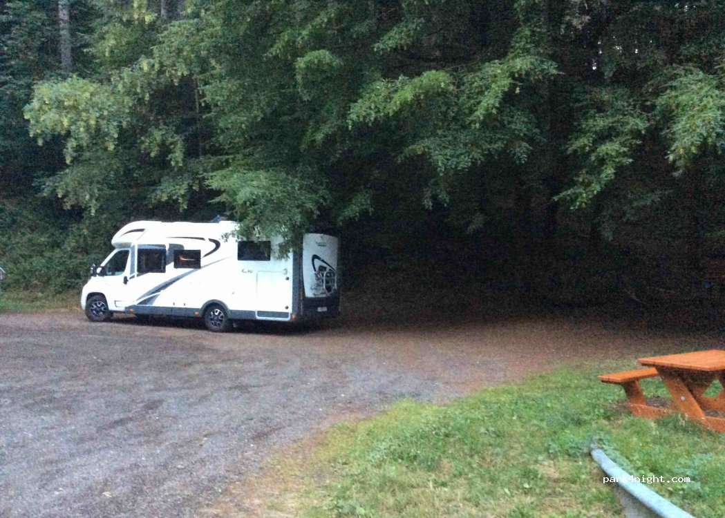 Aire de pique-nique (une table disponible). Départ de randonnée (Mullerthal trail). Place pour plusieurs cc. Route calme la nuit. Spot agréable pour une nuit.