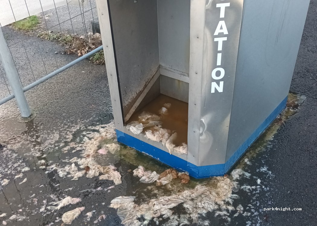 Nicht schön, zum übernachten geht es, und nur dafür, aber wofür dann noch 20 EUR ? Die Kassettenentleerung ist verstopft und läuft über, entsprechend sieht es aus, kostet aber auch 1 €. Frischwasser für 1€.
