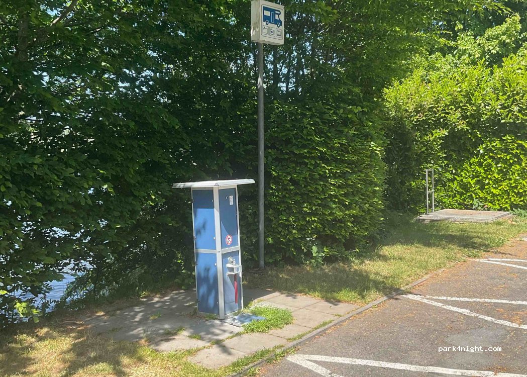 4 plazas de aparcamiento gratuitas para autocaravanas con estación de servicio. ¡Solo las plazas de la otra zona son de pago! No hay señal de entrada.