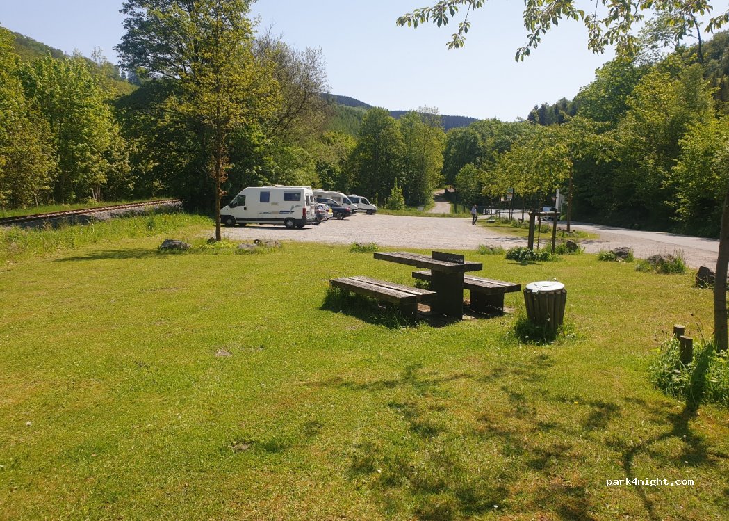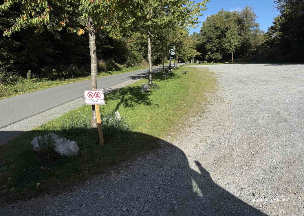 Der Parkplatz liegt direkt an der Hauptstraße und verfügt über Mülleimer und einen Picknickplatz.