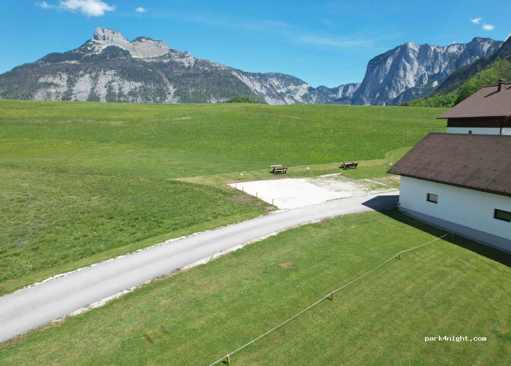 Newly built parking spaces with views of the Dachstein and the Loser. Very quiet and idyllic place. Beautiful views of the surrounding mountains. Excellent starting point for hiking and cycling tours. The surrounding lakes (Altausseer See, Grundlsee) are only a few minutes away by car. Shops can be found in the center of Bad Aussee, just a 3-minute drive away.