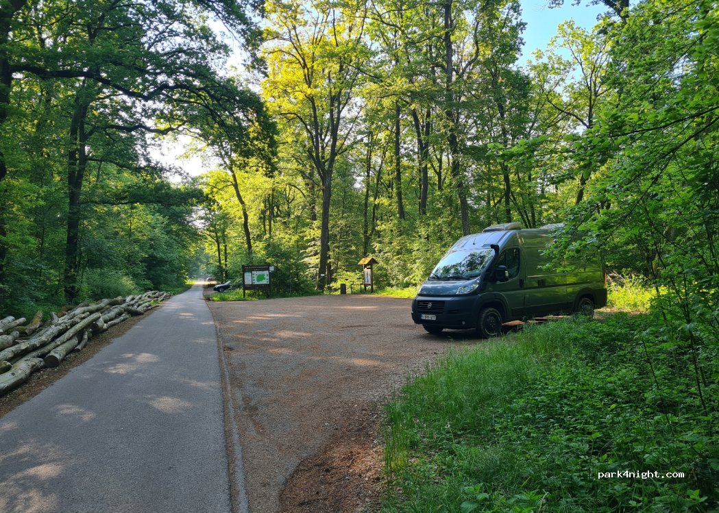 Ik heb op de eerste parking gestaan. De picknickplaats was heel druk met mensen met barbeques. Zodoende de tweede parking gemeden. Tot 22.00 uur veel langsrijdend verkeer van vertrekkende mensen. Daarna aardedonker. De autosnelweg is niet hinderlijk hoorbaar. Van de mannelijke vertierzoekers geen last gehad. Er is 1 vuilnisbak. Mooi wandelbos.