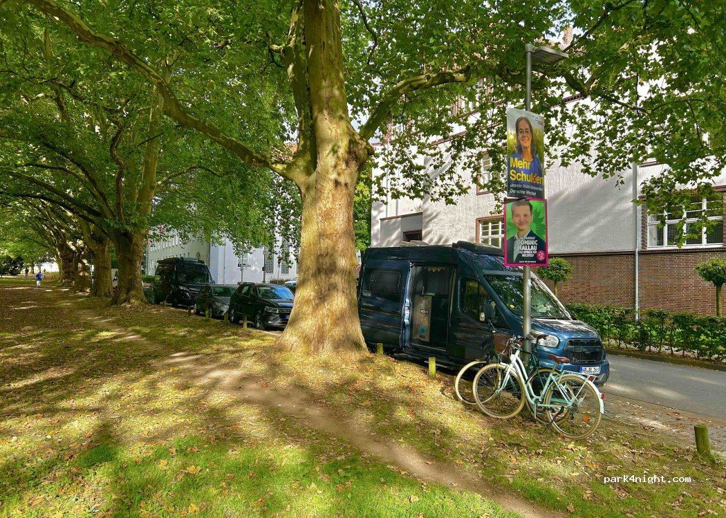 Great for a night. This street was actually full when we arrived at 1630, but the street adjourning Helmholtzstrasse had free spaces and no parking restrictions. About 10 mins to Restaurant Althaus Brauhaus which had excellent food and beer. A further 5 mins to the altstadt and numerous shops, restaurants and bars. Flat. Quiet.
